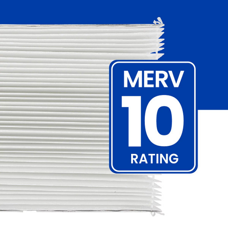 - MERV 10 filtration captures pollen, mold spores, pet dander, dust and other airborne particulates
