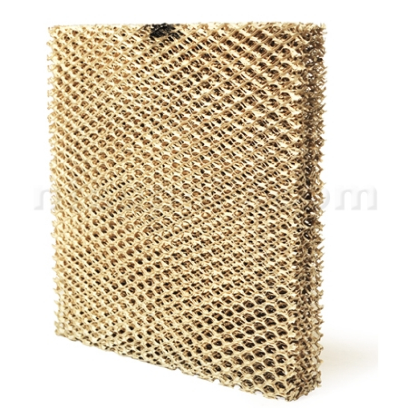 The "heart" of your whole-house humidifier, the Water Panel (also known as humidifier filter, water pad, evaporator pad), should be changed at least once per heating season. The pad is constructed of an expanded aluminum honeycomb mesh that is dipped in a clay coating. This coating is able to absorb and hold water. Warm, dry air is forced through the wet pad to introduce water vapor into the home.