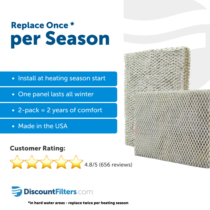 - Replace at least once per heating season