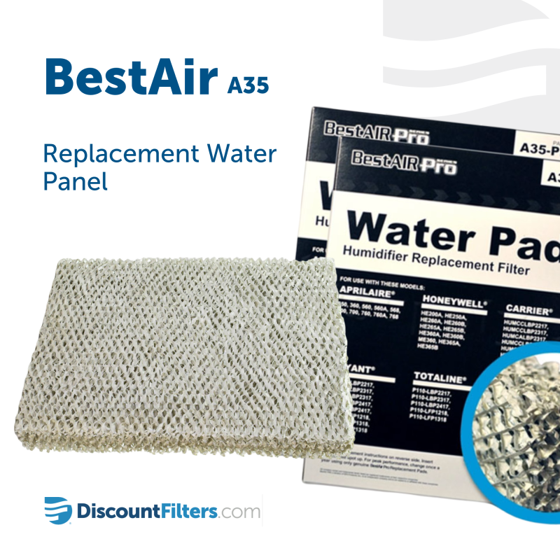 This replacement evaporator pad is also called a "filter" or "water panel". The water panel captures water as hot, dry air from your furnace blows across it, providing comfortable, humid air to your home. This product serves as a replacement for many brands and models (see list below)