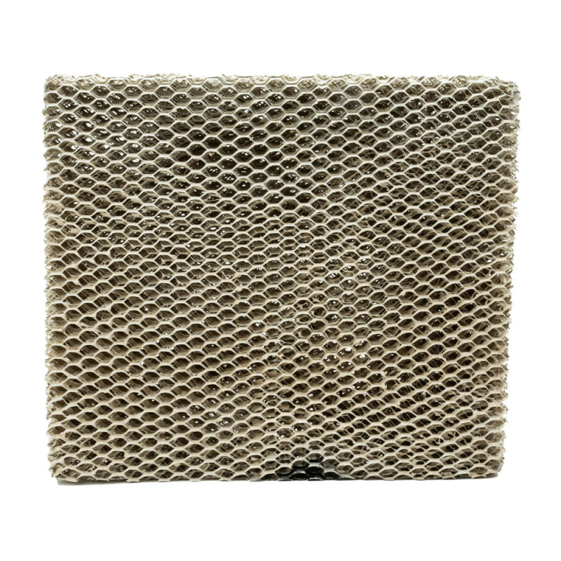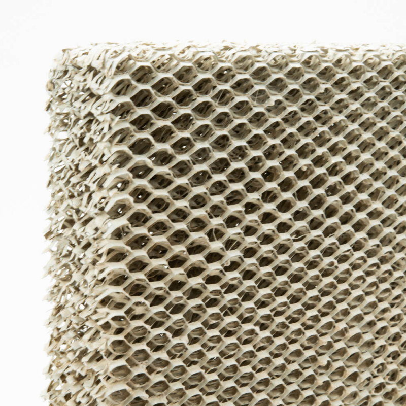 - Constructed using an expanded aluminum mesh pad covered with a special clay-like coating that absorbs water and removes mineral deposits.