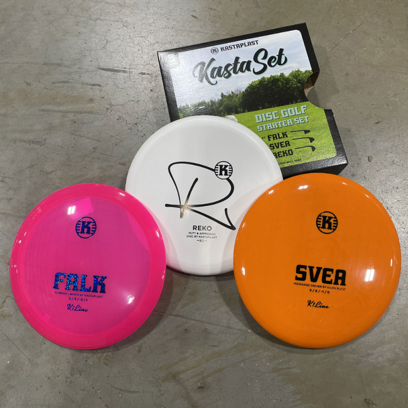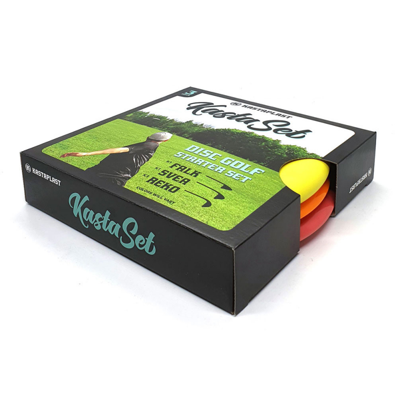 The Kastaplast Disc Starter Set is the perfect set for players starting out in the game who want to throw the coolest plastics out there! It's a great gift idea for a new player or anyone interested in trying disc golf! All discs included are PDGA approved. Includes fairway driver (Falk), midrange driver (Svea), and putter (Reko). Drivers are made in K1 plastic and putter made in K3 plastic.