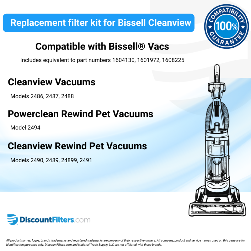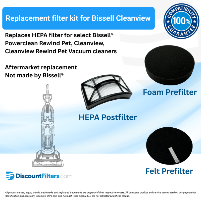 - Top quality replacement filter fits Bissell® Cleanview & Powerclean Vacuum Series Vacuums