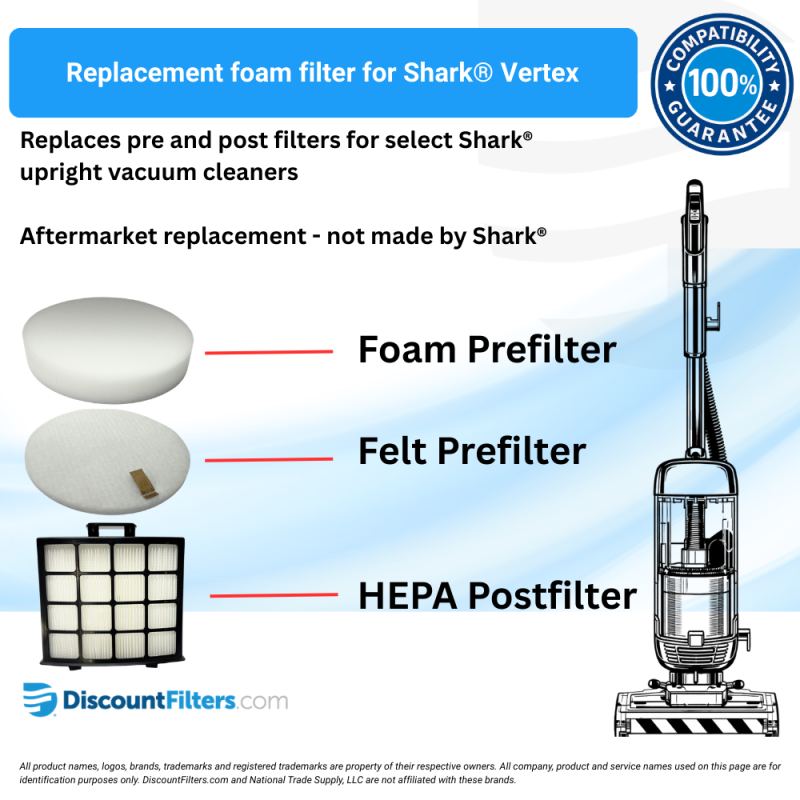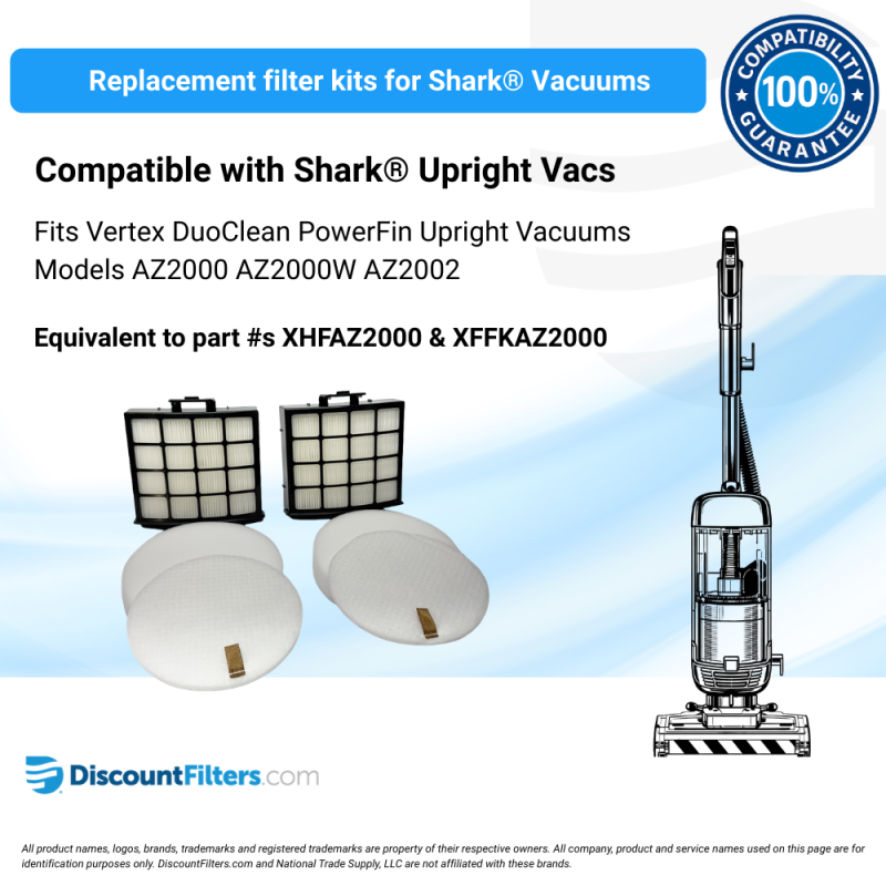 - Replaces filters in Shark® Vertex DuoClean PowerFin upright vacuums