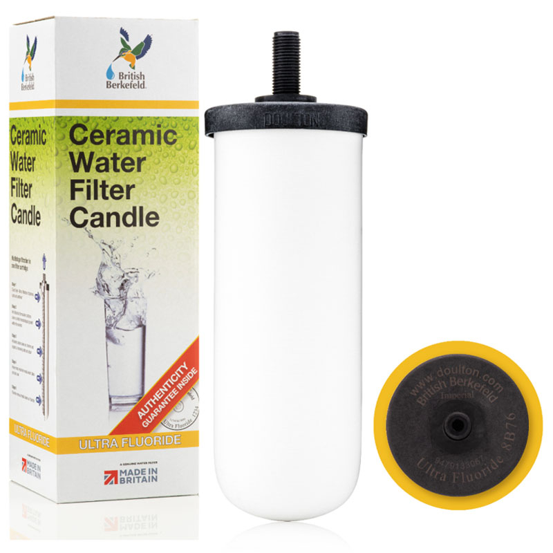 British Berkefeld 7" Ultra Fluoride Ceramic Water Filter Candle - W9120133. Sterasyl microfilter plus fluoride and lead removal media with activated carbon. Gravity water filters are designed for long life and effective filtration of contaminants including sediment, fluoride, bacteria, chlorine, heavy metals, microplastics and more, from virtually any source. Retains health-giving minerals that are naturally present in your water. Reliable, fresh, clean to taste and easy to use for all the family.